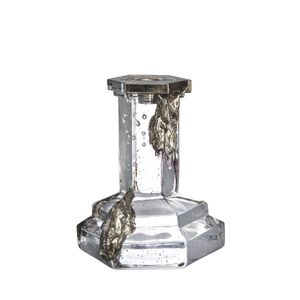 Denne mellomstore lysestaken i fargen Glossy Glaze er designet av Hanna Hansdotter og laget i krystallglass. Den glansfulle overflaten og de rå detaljene gjør lysestaken til et karaktersterkt innslag i interiøret – både alene og sammen med andre varianter i serien.