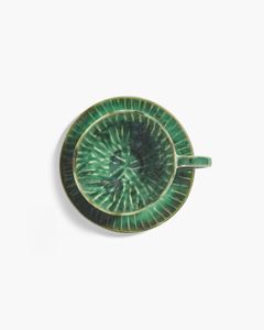 Denne grønne cappuccinoasjetten fra Verde Lanza-kolleksjonen av Pascale Naessens har den samme solblekede glasuren og skjellignende teksturen som kjennetegner kolleksjonen. Den er designet for å passe perfekt sammen med den matchende cappuccinokoppen, som kjøpes separat..