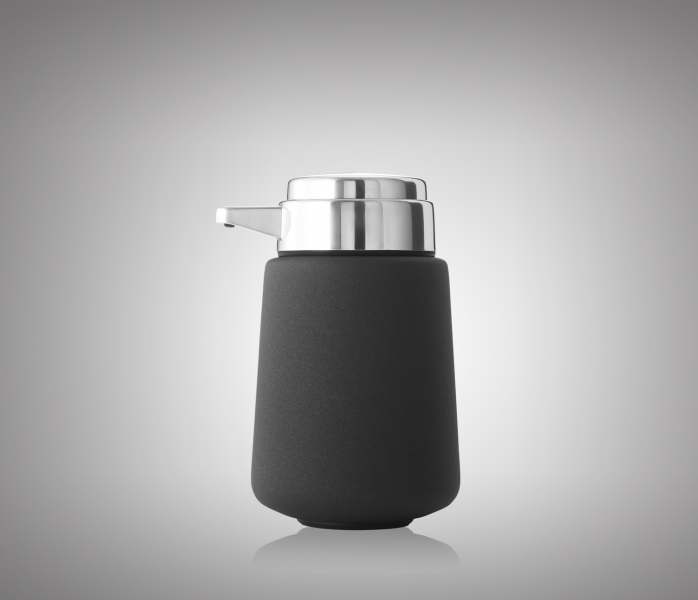 Såpedispenser i rustfritt stål og silikongummi H 13 cm Ø 8 vm Vol 400 ml
